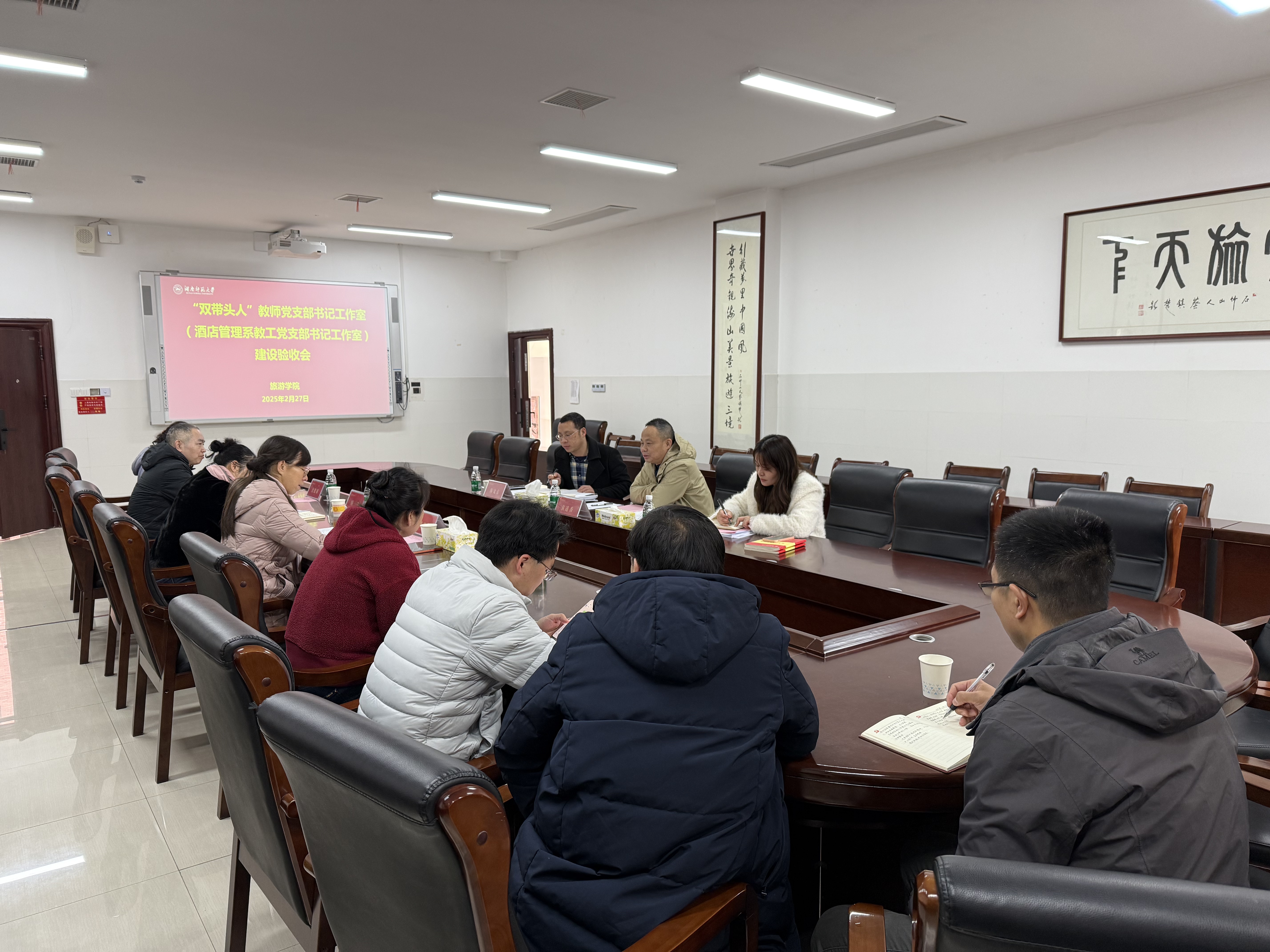 2月27日上午,公司党校常务副董事长兼党委组织部副部长袁道香带队到公司就“双带头人”工作室(酒店管理系教工党支部书记工作室)建设进行验收。公司党委书记闵素芬、副书记廖欢、专职组织员骆劲华出席验收会。公司党委组织部组织科科长陈文东、党员管理科副科长文敏,公司酒店管理系教工党支部书记、“双带头人”工作室负责人唐健雄,酒店管理系教师党支部全体支委参加验收。验收会由骆劲华主持。