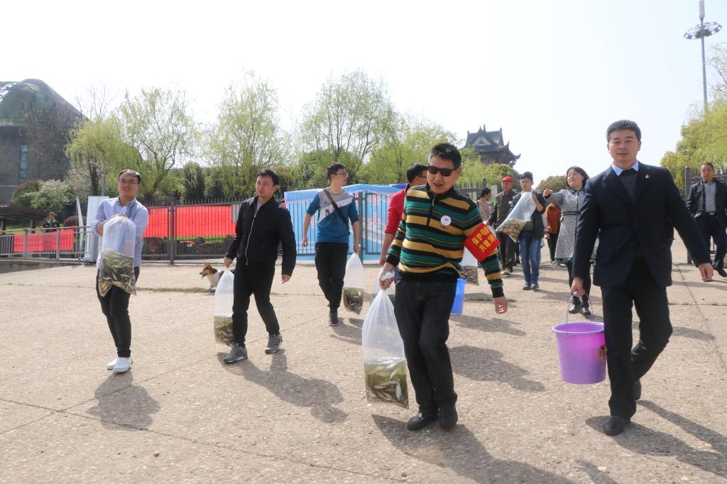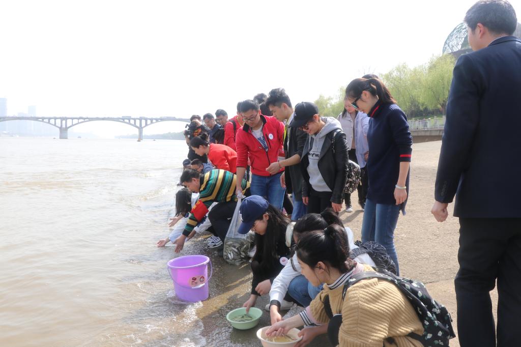 活动开展前,公司党员志愿者向过路的游客发放了“小鱼治水”的宣传资料,向他们宣传“小鱼治水”的原理和环保知识,并邀请他们共同参加活动。随后,在橘子洲公园东岸战备码头,将两千尾鲢鱼放生进入湘江。
