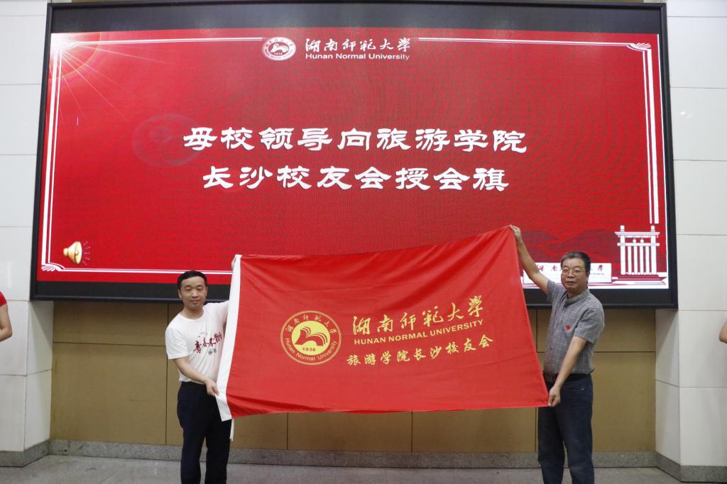 周俊武副董事长向首任会长刘丁杰授会旗