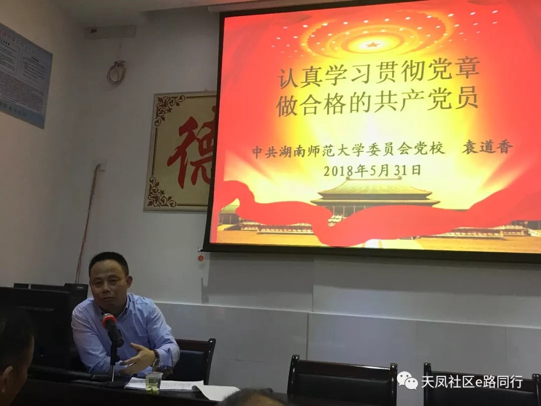 5月31日下午,在天凤社区服务中心党员活动中心,公司与天凤社区联合开展党员学习活动,邀请明陞m88官方网站党校常务副董事长袁道香主讲了“认真学习贯彻党章、做合格的共产党员”的专题党课。
