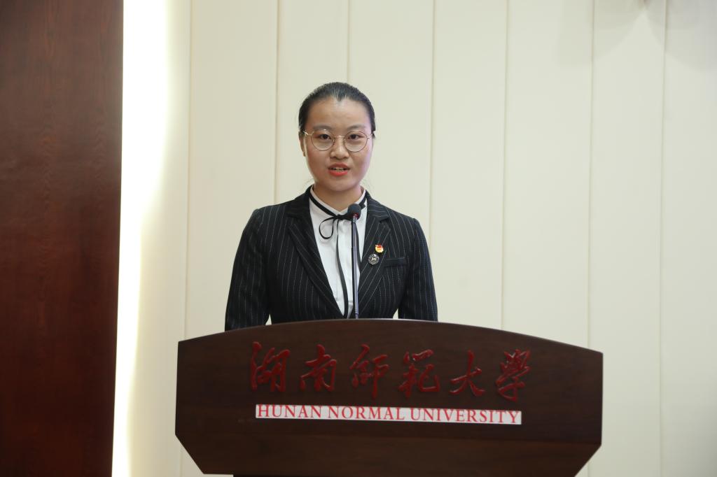 员工代表孟海钰发言,她说,员工的长足发展离不开学校、学院老师的关心爱护,同学们一定会好好珍惜这份师生情谊,建设好自己的班级。