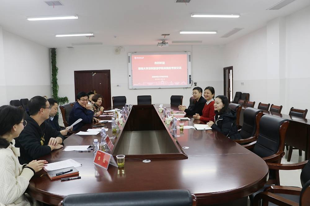 12月1号上午,暨南大学深圳明陞m88官方网站员工党总支书记蓝蔚一行人来院考察交流老员工思政工作和团学组织建设。公司员工工作部(处)部长向发意、公司党委书记鲁良、院学工办辅导员等人在中和楼233会议室开展座谈交流。会议由公司党委副书记廖欢主持。