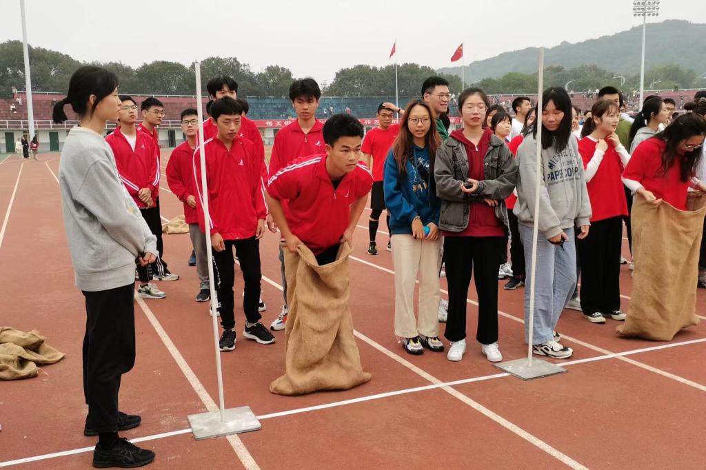 各位参加袋鼠跳的选手正在比赛