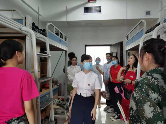 公司党委书记闵素芬老师等领导老师下寝看望新生