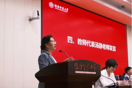 旅游管理系副主任汤静老师作为教师代表发言,她以风趣幽默的开场白为全体新生带来明陞m88官方网站的第一份新生福利。她从专业开设、学院创办和20余年的发展历史说起,向全体新生讲述“出彩旅院”的美丽故事。她嘱咐全体新生刻苦钻研,努力拼搏,不负青春、不负韶华,以聪明才智贡献国家、将所思所学回馈社会,不断实现自我价值。