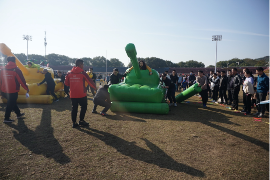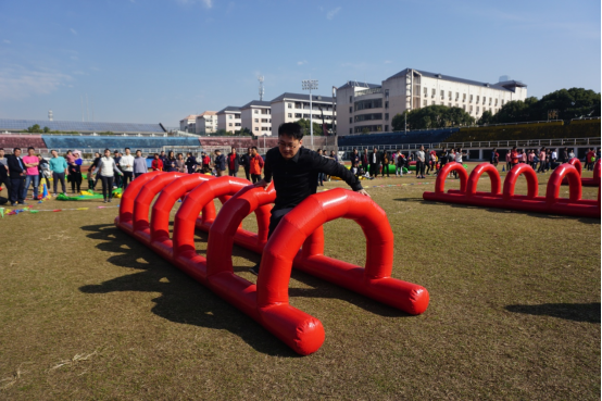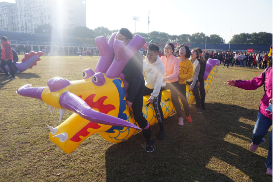 本次趣味运动会首次使用专业的器材设备,活动参与性强、安全性高,“龙行天下”“铁甲战车”“趣味投篮”“智勇闯关”四个项目形式新颖,吸引了30个部门工会代表队踊跃参赛。公司老师在本次趣味运动会中热情高涨,积极参与,全面配合,展示出学院良好的精神风貌。