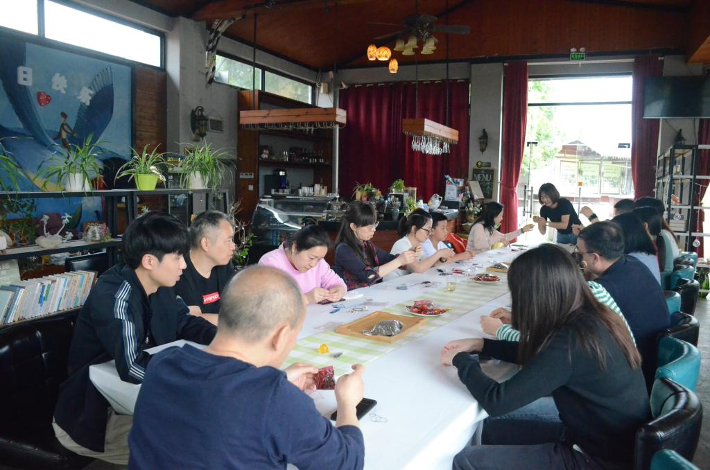 下午,大家体验了手工香囊制作活动。在活动现场,手工老师现场细心指导,全体老师认真穿针引线。一会儿,一个个具有中国传统风味、造型别致新颖的香囊,在心灵手巧的“造型师”们手中呈现出来。在制作过程中,大家相互学习,相互欣赏,气氛轻松而愉悦。