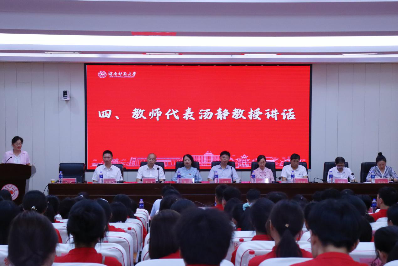 教师代表汤静强调大学是一个追求知识和成长的场所,鼓励同学们珍惜各类平台机会,养成学习与生活的良好习惯,在校园中尽情展现才华和智慧。