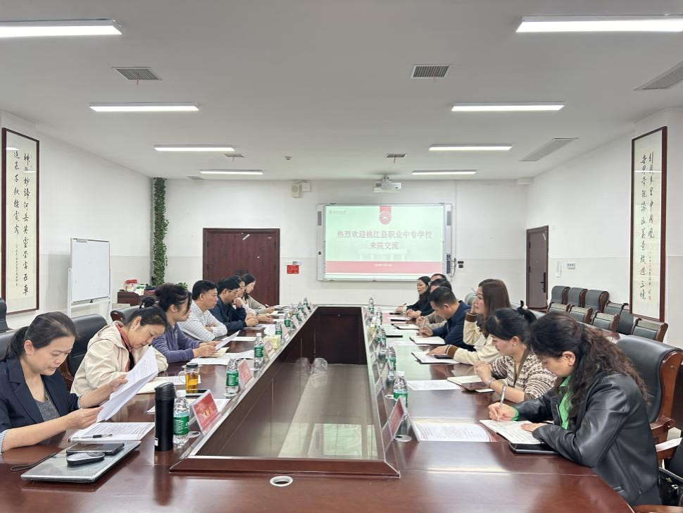 10月16日上午,桃江县职业中专公司党委书记、董事长周育班一行来院调研交流。公司经理王兆峰,副经理向智勇,副处级专职组织员骆劲华出席座谈会,酒店管理系副主任伍蕾,酒店管理系副教授刘颖洁参加座谈会,交流会由公司党委副书记廖欢主持。