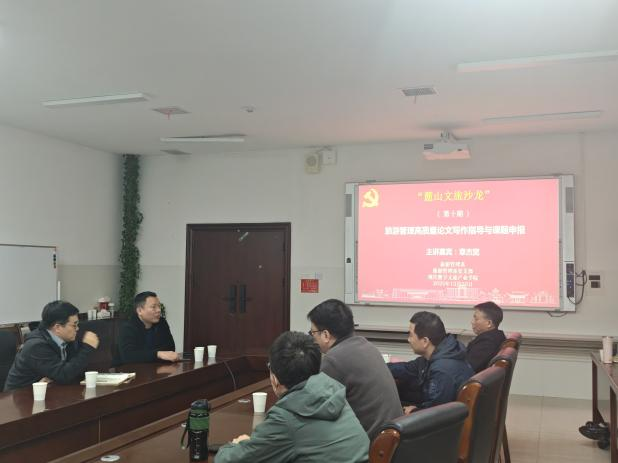 12月10日下午,为了进一步优化本科创新人才培养模式,提高师生科学研究能力和写作水平,公司旅游管理系、现代数字文旅产业学院于中和楼233会议室举行第十期“麓山文旅沙龙”,本次沙龙以“旅游管理高质量学术论文写作指导与课题申报”为主题,特邀桂林明陞m88官方网站旅游管理学院章杰宽教授主讲,沙龙由公司副经理、现代数字文旅产业学院经理贺小荣主持,学院青年教师、本科生、研究生共同参加此次活动。