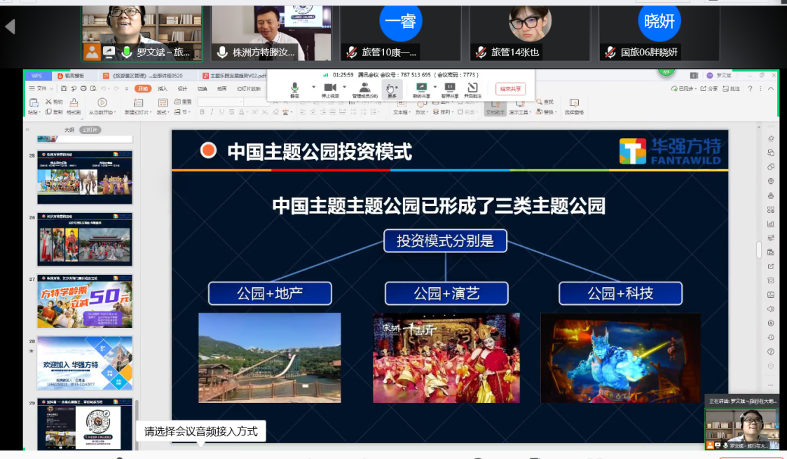 (通讯员康一睿)5月20日下午在腾讯会议平台,由旅游管理系罗文斌副教授主讲的《旅游景区管理》携手方特集团开展“企业精英进课堂”校企合作教学实践活动。本次活动邀请到方特旅游第三事业部王杰鹏副总经理走进课堂,为2018级旅游管理班和国际旅游班同学带来了一场精彩的景区管理实践讲座分享。