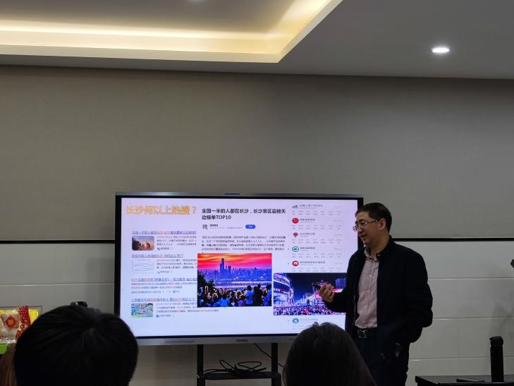 首先,学院副经理、旅游管理系支部书记郑群明教授以“长沙文旅新体验新方向”为题,以长沙夜间消费业态为例,从“长沙夜间消费现状 ”、“长沙网红城市在全国的地位”、“网红长沙的经济拉动效应”三个方面介绍了长沙在全国的地位,指出当下文化和旅游深度融合的过程中夜间经济的价值挖掘、努力方向和策略选择。