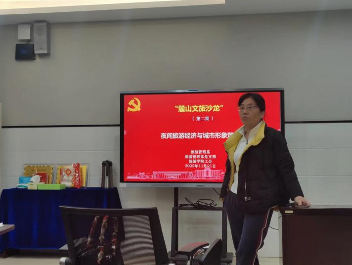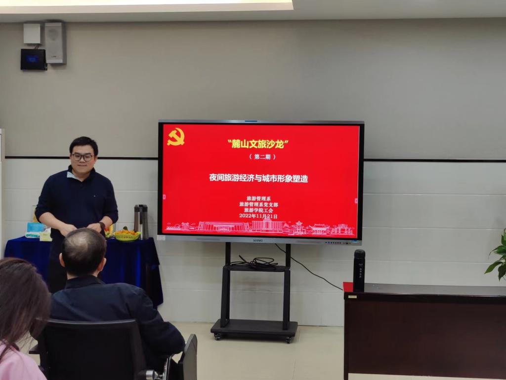 11月21日下午,公司在中和楼一楼工会活动室举行了第二期“麓山文旅沙龙”。该文旅沙龙继续由旅游管理系和旅游管理系党支部共同策划并组织,学院工会全力支持。本次沙龙主题为“夜间旅游经济与城市形象塑造”。学院副经理郑群明、学院副处级专职组织员骆劲华、工会主席汤静出席,沙龙由公司旅游管理系主任罗文斌主持。