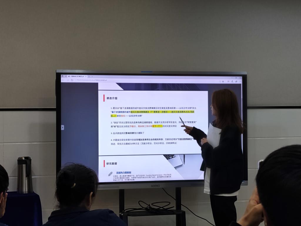 随后,学院21级硕士研究生侯佩、曹灵、龙文丽、陈子奇等分别以长沙“夜间消费”、“形象塑造”、“体验安全感”、“社区参与”等主题,结合各自的研究分别进行了汇报,并提出在研究过程中的发现的问题和困惑。分享过程中,现场老师和员工展开热烈的讨论,针对“何为夜间消费”、“何为烟火长沙”、“何为Z世代”等多个概念进行探讨;另外,现场老师从研究目的、研究方法、研究意义等多方面对员工的研究论文写作进行指导、启发员工更好地将论文写在祖国的大地上。