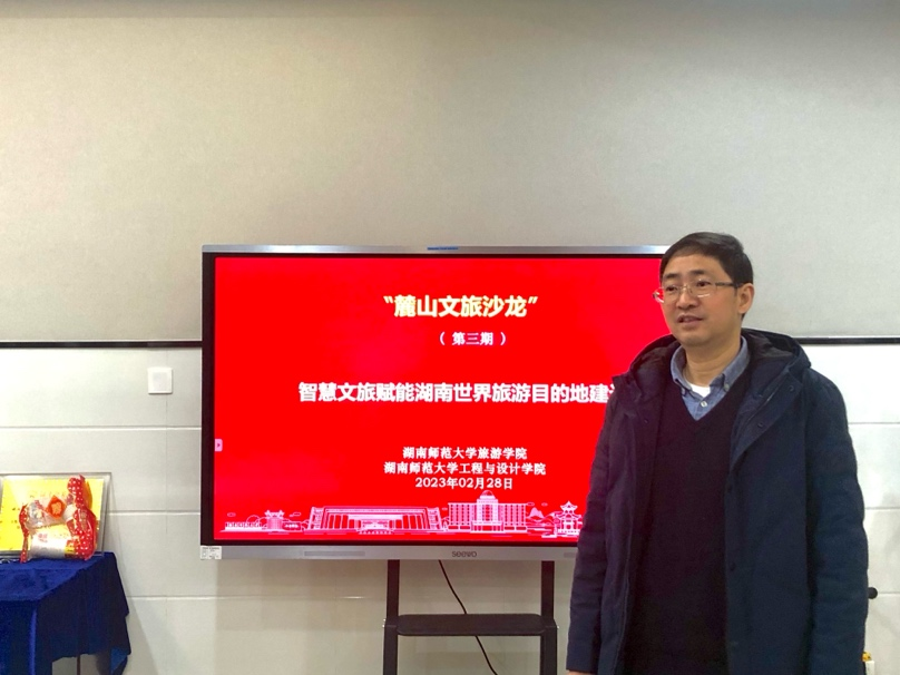 2月28日上午,公司在中和楼一楼工会活动室举行了第三期“麓山文旅沙龙”。本次沙龙主题为“智慧文旅赋能湖南世界旅游目的地建设”,沙龙活动由公司副经理、旅游管理系党支部书记郑群明主持。沙龙邀请了工程与设计学院教授陈剑和副教授王巍作为嘉宾出席沙龙,公司党委副处级专职组织员骆劲华,会展经济与管理系主任孟奕爽以及学院部分研究生和本科生参加了沙龙。