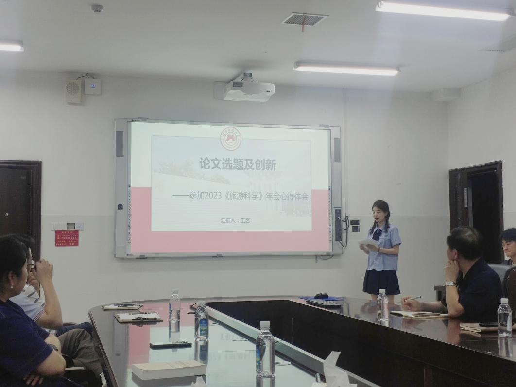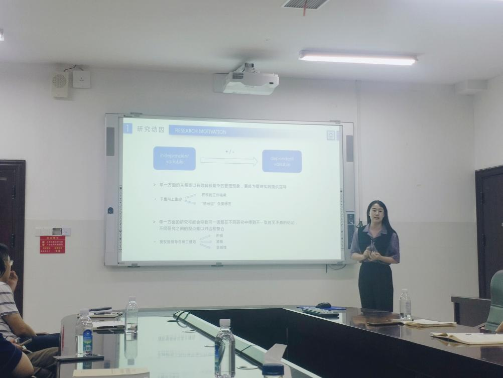 首先,孟奕爽以“AI赋能教师”为主题,以AIGC为核心介绍了人工智能目前应用于教育的现状,介绍了如何利用人工智能服务进行教学科研,之后2022级职教研究生朱美娟现场演示了AI软件的安装和使用方法。王晶团队旅游管理专业研究生王艺分享了参加本年度《旅游科学》学术年会的心得与体会。朱张祥团队研究生赵雅欣分享了“组织行为研究中的双刃剑效应”研究主题以及团队最新研究成果。在分享之后师生们进行了交流互动,对这些主题进行了深入研讨。
