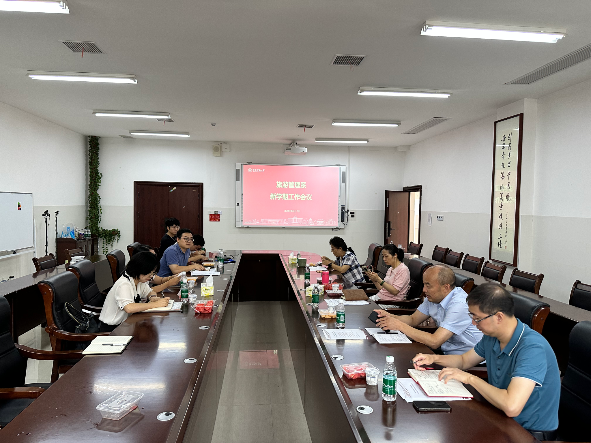 9月7日下午,公司旅游管理系于中和楼233会议室召开新学期工作会议。学院副经理贺小荣、郑群明出席,会议由系主任罗文斌主持,旅游管理系全体在家教师参加会议。