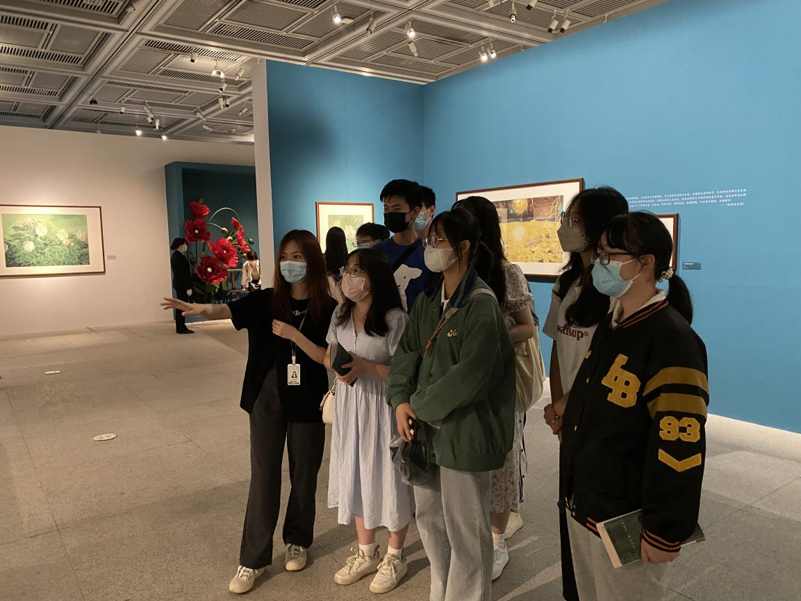 参观环节由在省博物馆实习的两位会展经济与管理专业系2019级员工肖玉洁和彭湘琳引导和讲解。员工们重点参观了省博物馆的特色展——邹传安艺术与文献展“花魂鸟魄”。在一幅幅展品前,员工们驻足欣赏,感受邹传安画笔下的鸟语花香和画家创作的苦心孤诣。