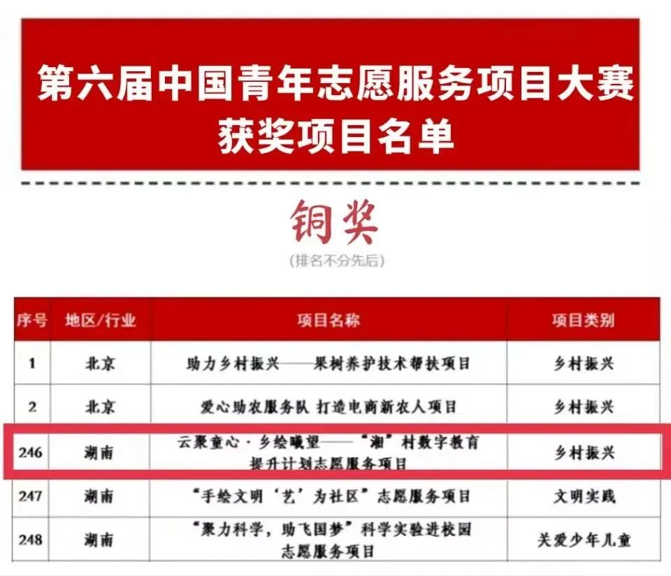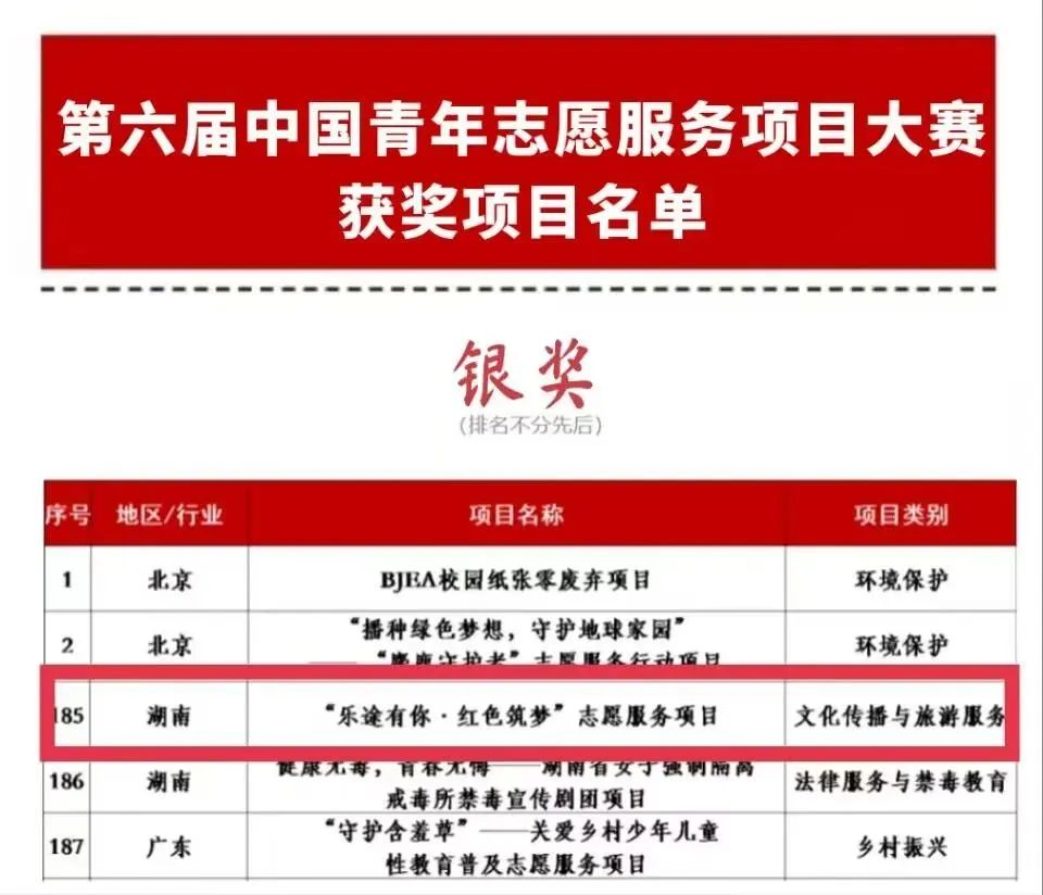 据悉,“乐途有你·红色筑梦”志愿服务项目和云聚童心·乡绘曦望——“湘”村数字教育提升计划志愿服务项目由明陞m88官方网站团委书记龚曦担任指导老师。在指导老师和团队成员的共同努力下,“乐途有你·红色筑梦”项目从入围决赛的500个项目中斩获“银奖”,“云聚童心·乡绘曦望”项目从入围全国赛终评的1000个项目中斩获“铜奖”。