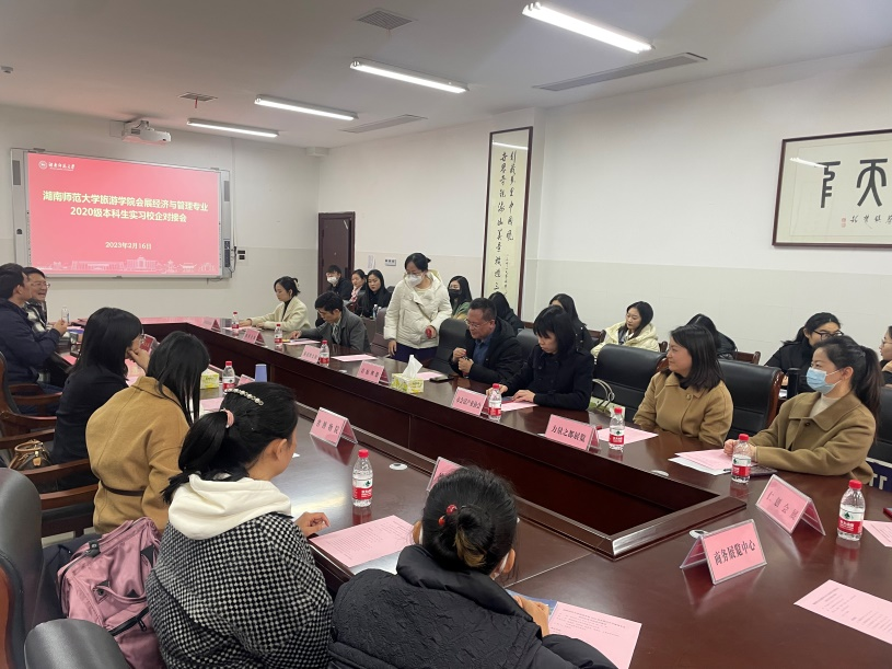 为进一步落实《国务院办公厅关于深化产教融合的若干意见》(国办发〔2017〕95号)文件精神,促进高校和产业深度合作、提高人才培养质量,2月16日下午,会展经济与管理系在中和楼233会议室举办2020级会展经济与管理专业本科生专业实习校企对接会。会展经济与管理系主任孟奕爽,副主任朱张祥,青年教师徐新龙、唐彬礼,11家会展企事业单位代表,2020级会展经济与管理专业本科生参加了本次对接会。会议由朱张祥主持。