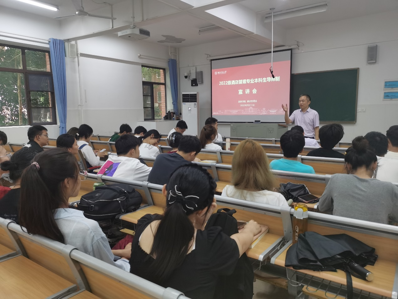 9月11日下午17点,公司酒店管理系在中和楼220教室召开2022级酒店管理专业本科生导师制宣讲会,解读2022级酒店管理专业本科生导师双选相关事宜。酒店管理系主任唐健雄,系里教师王武林、李毅、李磊出席,2022级酒店管理本科生全体参加,会议由酒店管理系教师王晶主持。