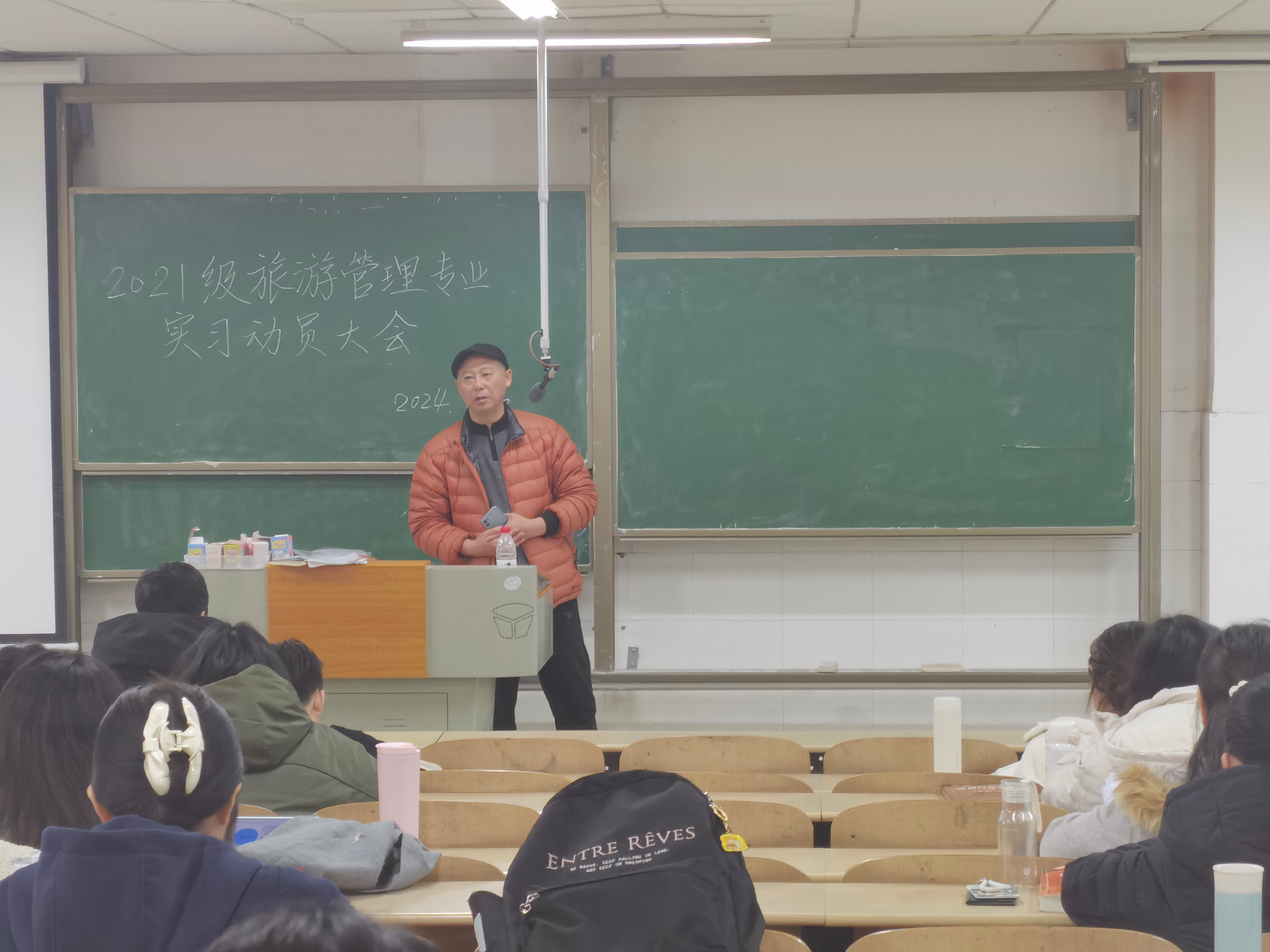 1月10日下午,公司旅游管理系在至善楼310室召开2021级旅游管理专业本科生专业实习动员大会。学院经理王兆峰,副经理贺小荣出席,旅游管理系主任罗文斌,实习指导教师杨利、王钊、张洪超,2021级辅导员赵雅璇参加会议,会议由旅游管理系副主任汤静主持。