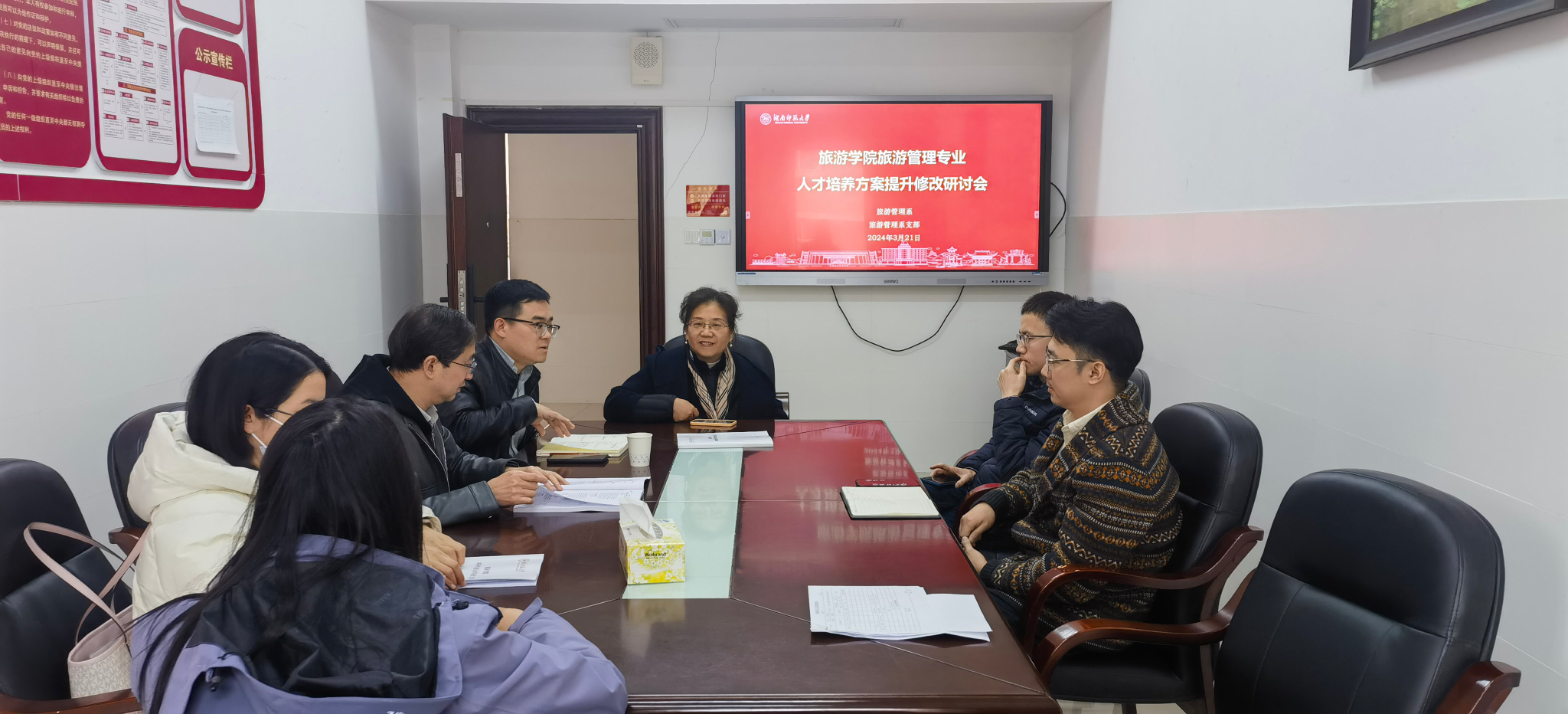 3月21日,旅游管理系、旅游管理系党支部在中和楼235会议室召开旅游管理专业人才培养方案修改研讨会,学院副经理、系党支部书记郑群明出席,会议由旅游管理系系主任罗文斌主持,系副主任汤静以及支部委员、系里的部分青年教师参加本次会议。