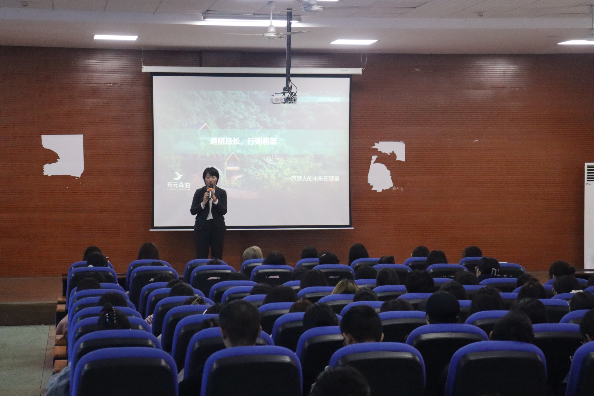 10月24日下午,公司在张公岭校区图书馆报告厅举办旅游管理专业认知教育。开元森泊总部招聘总监吴燕应邀与公司2024级本科生开展交流,公司旅游管理系主任罗文斌出席此次活动,活动由2024级辅导员李天宇主持。