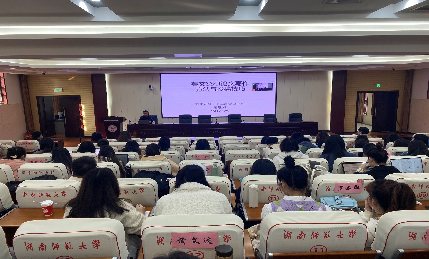 会议伊始,主讲人向同学们简要分析了为什么要发表SSCI论文,全方位阐述了发表SSCI论文的重要性。随后,他以期刊《Tourism Management》为例,总结了近年来SSCI论文投稿的技巧,同时提出要多关注国外最新研究方向,把握好论文选题。最后他针对如何写好英文论文展开了讲述,鼓励同学们要多阅读近20年来发表在外国顶级期刊上的文章,学习西方学术论文的语言表达,并强调了要端正论文写作态度,写作时要诚心严谨,仔细斟酌文章用词,投稿后要认真对待修改意见,对照意见反复修改文章。