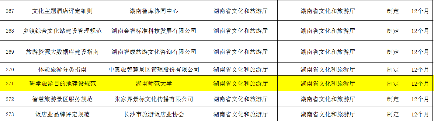2020年3月31日,湖南省市场监督管理局发布了《关于下达2020年地方标准制修订项目计划的通知》,公司教授、研学旅行研究院常务副经理郑群明主持申报的《研学旅游目的地建设规范》获得湖南省地方标准立项。据悉,这是继2019年郑群明教授主持的《研学旅游示范基地评价规范》和孟奕爽副教授主持的《研学旅行产品设计规范》之后,由研学旅行研究院牵头的第三个我省研学旅行领域地方标准。