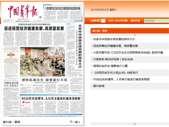 (通讯员 陈楚菡 刘溪溪)近日,公司文旅志愿服务队暑期文旅实践工作事迹在《中国青年报》8月16日第4版刊登,央广网、光明网、中国经济网等多家中央级媒体转载报道,反响热烈!
