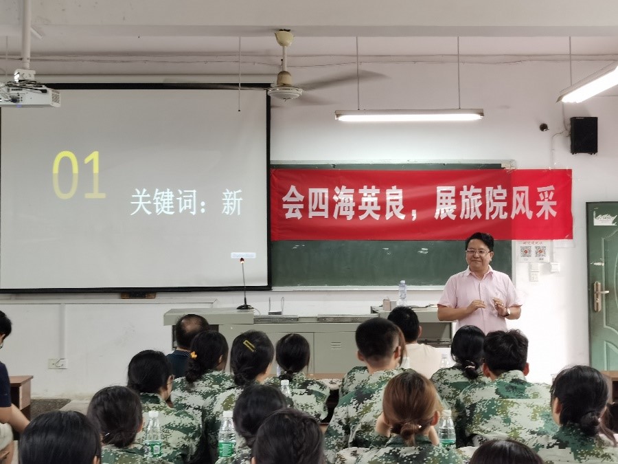 汤静向同学们介绍了旅游管理专业的基本概况,包括旅游管理专业授课老师、课程设置、学科分类以及发展历史。唐健雄介绍了酒店管理专业的基本情况的同时,帮助同学们解决了就业情况和交换生项目等方面的疑问。孟奕爽用“新”、“升”、“悟”三个关键词为大家介绍了专业的基本内容,包括专业知识、团队团队与校园生活等。