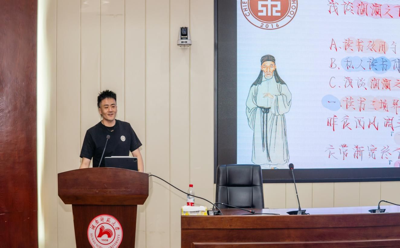王喆以“浅谈湖湘文化,经世致用,读书方略”为主题进行经验分享,从读书的效用与人生本质求索、私人读书体专业构建以及浅谈湖湘文化与专业修真三个大方面展开。王喆就“读书是否有用?”、“我们应该读有用书还是无用书?”和“大学以来是否坚持阅读?”三个问题与同学们进行沟通交流,并表达了自己对于读书的理解。通过身边案例与自身经历分享,同学们的阅读思维由被动转为主动。