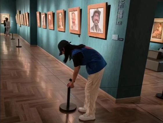 活动伊始,志愿者们在负责人的介绍下了解美术馆布展情况和注意事项。随后,志愿者们统一身着志愿者服装,按照分组到达各自岗位开展活动。在展厅内,志愿者们化身艺术作品的守护者和传播者,回答现场游客问询、为游客指引线路、维持游客观展秩序、及时劝阻游客不文明的观赏行为等,引导游客欣赏和感悟艺术之美;同时团队还向游客宣传了延安精神,普及了相关知识。
