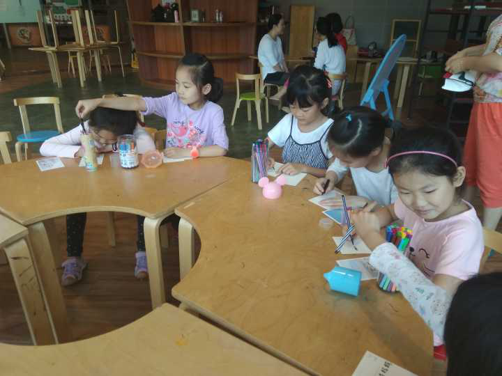 最后,在志愿者的指导下,小朋友在各自获得的贺卡上,画上心中妈妈的样子并写下祝福作为礼物送给妈妈。