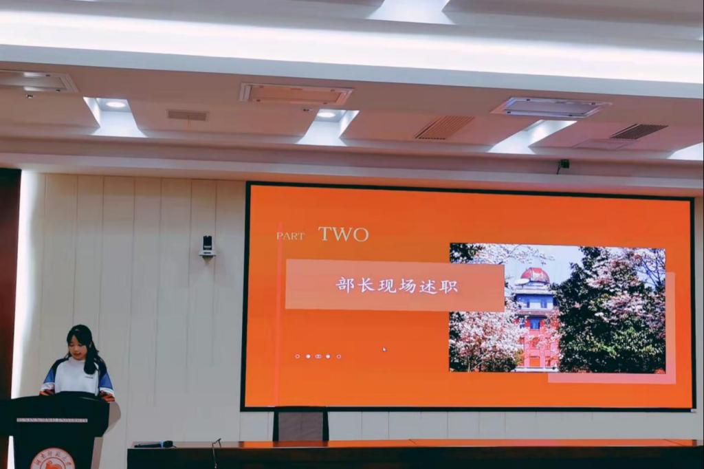 员工会各部门部长围绕一学年以来的工作业绩和不足进行述职,赵雅璇寄语员工会要成为先锋力量,自觉担当尽责,打造高效性、服务型的员工组织。