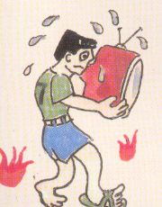 8、楼上如被火围困,快向室外抛沙发垫,枕头等软物,和其他小物品,夜间则可打手电筒发出求救信号。