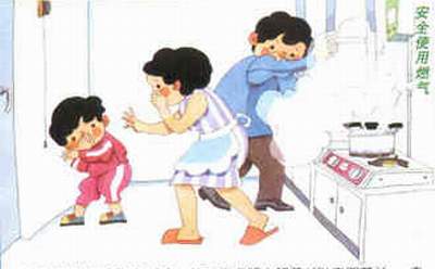 发现煤气泄漏要打开门窗,切不可点明火和开(闭)电器开关