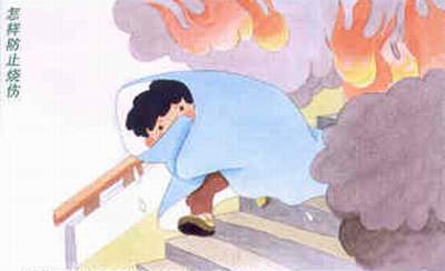 用湿毛巾等捂严口、鼻、弯腰走或匍匐前进