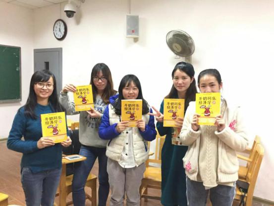 | 程慧老师带领小组成员学习《牛奶可乐经济学》 |