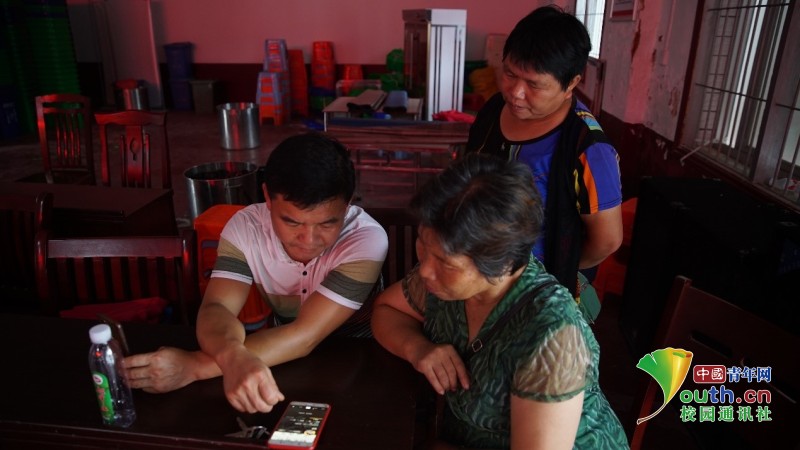 图为实践团队当场指导村民如何利用“抖音”等软件进行直播并展开红色论坛直播分享。中国青年网通讯员 程子昊 摄