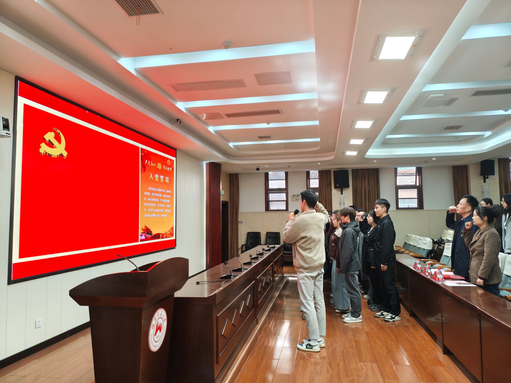 11月26日中午,公司于中和讲堂报告厅隆重举行第79期入党积极分子培训班开班典礼暨2025年秋季学期新党员入党宣誓仪式。公司党委副书记(主持党委日常工作)罗明、公司党委党建组织员廖欢出席仪式,学工办辅导员李天宇、培训班全体学员、本学期全体新发展党员参加,仪式由学院组织人事秘书邓丛亮主持。