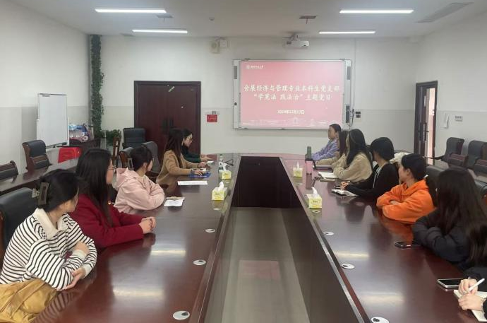 12月17日下午,会展经济与管理专业本科生党支部于中和楼233会议室开展“学宪法 践法治”主题党日活动。活动由支部副书记范荩予主持。