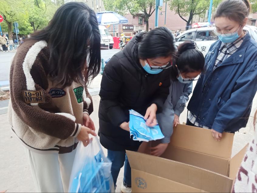 3月27日,收到防疫物资抵达的消息后,江边宿舍的部分本科生支部党员主动前往新民路搬运防疫物资。各位党员分工协作,对物资进行清点、交接、分类,最后分发到各宿舍。