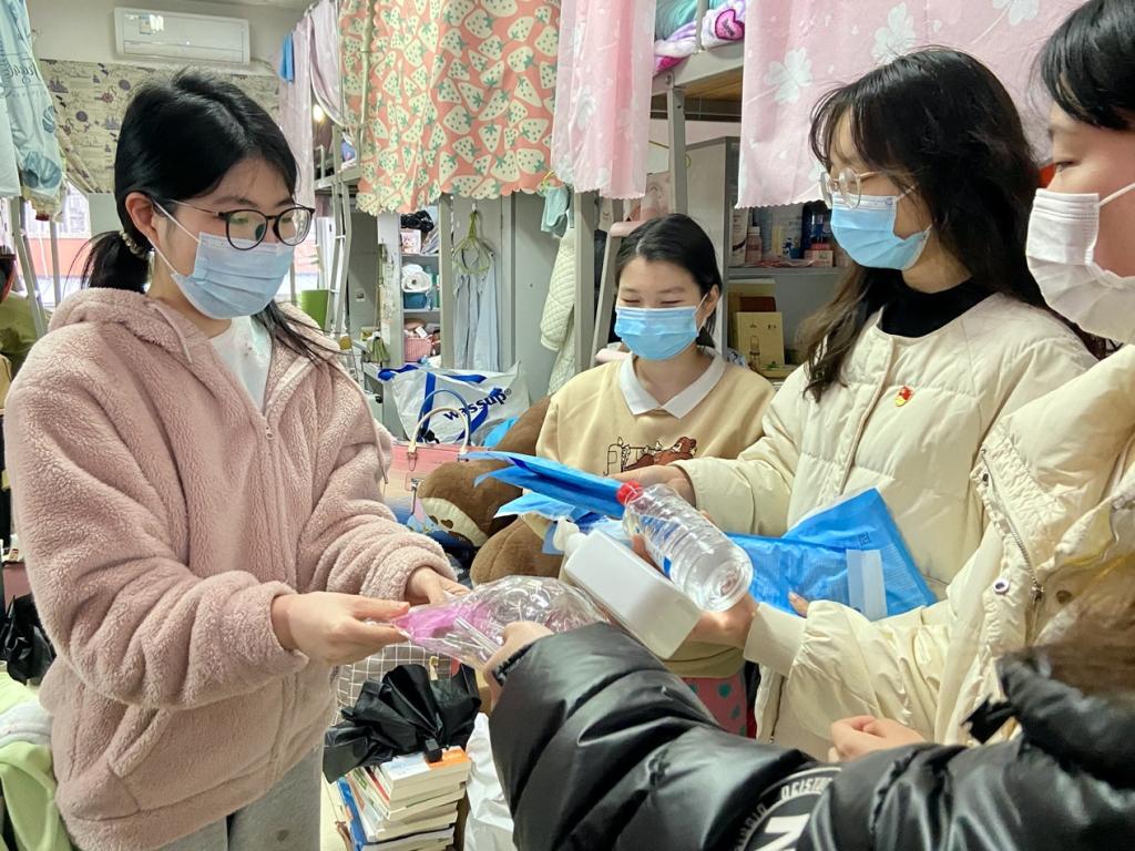 酒店管理专业本科生党支部党员在员工宿舍协助学院派发防疫物资,进行消毒杀菌防疫宣传。协助派发防疫物资包括1440个口罩、24支体温计、24瓶酒精喷雾和24瓶免洗抑菌凝胶。派发防疫物资的同时提醒各寝室同学多开窗通风,按时清理垃圾,定期喷洒酒精喷雾,确保不留死角、不留盲区,筑牢防疫安全防线。