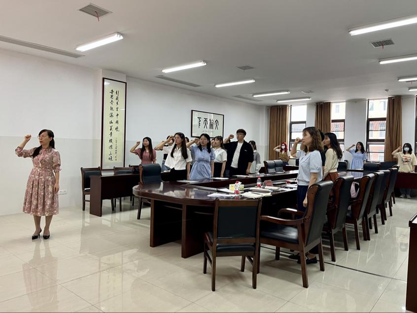 闵素芬书记带领全体党员进行宣誓,铮铮誓言彰显着支部党员的赤子之心。宣誓后,闵素芬书记进行总结和寄语,她对如期转正的13位同志和新发展的5位同志表示热烈的祝贺,也对支部的全体党员提出了殷切的期望,希望各位党员同志能做到“强党性、勤学习、作表率、严要求,以青春之我、奋斗之我谱写新时代的篇章。”