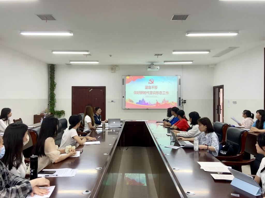 5月26日,酒店管理专业本科生党支部第一书记邱粤湘在中和楼233会议室为支部党员讲授了“坚定不移做好新时代意识形态工作”专题党课。党课由支部书记邱丽华主持。