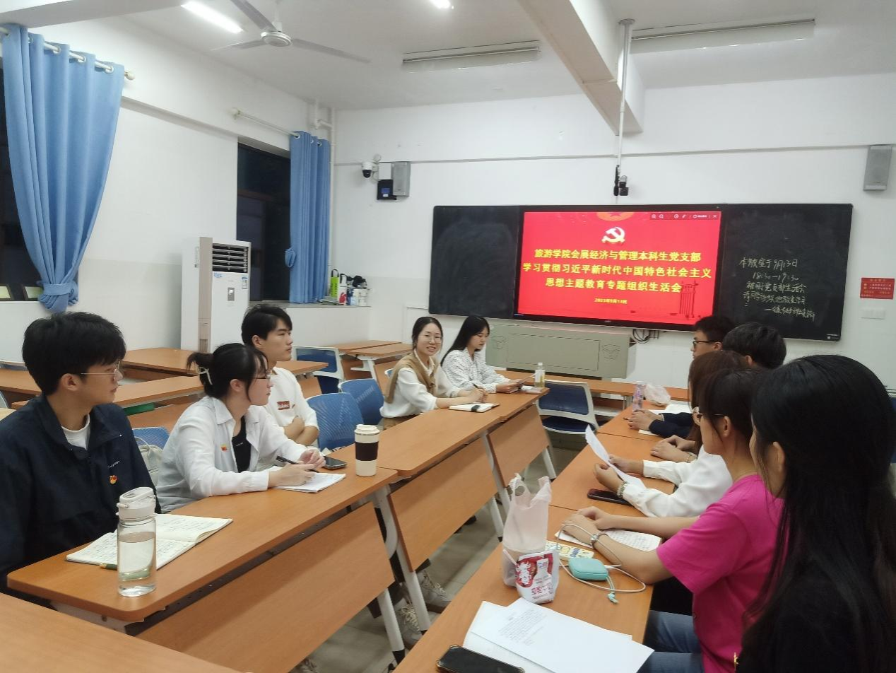 9月13日晚,会展经济与管理专业本科生党支部于中和楼230教室召开学习贯彻习近平新时代中国特色社会主义思想主题教育专题组织生活会,支部“第一书记”匡文琪到会指导,会议由支部书记龚莎主持。