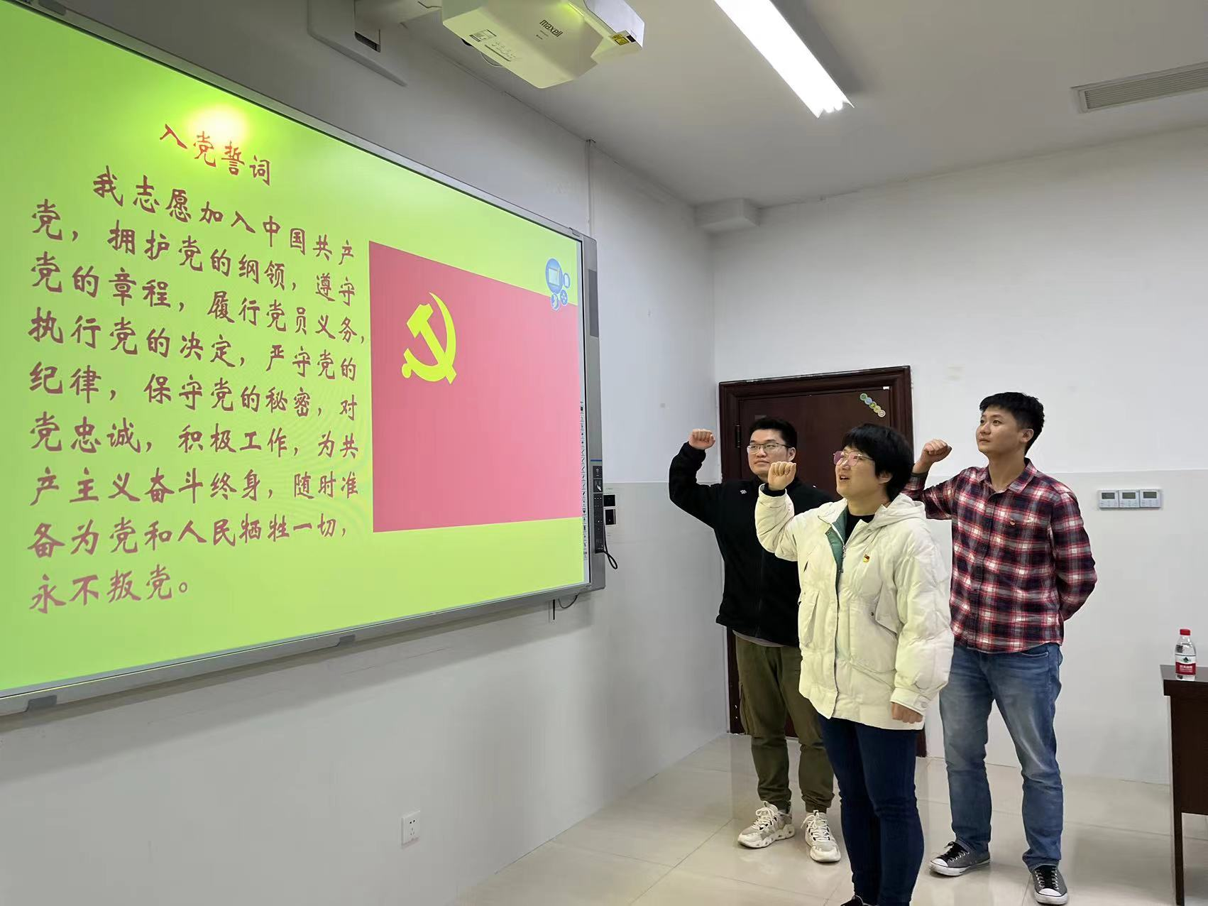 会议开始,发展对象雷宝华、邹一鸣分别向大会做个人基本情况汇报。随后,两位同志的入党介绍人就两位发展对象的有关情况向大会作进一步汇报,认为其已具备党员的基本条件,同意发展其加入党组织。随后,支委会向大会汇报了两位发展对象的审查情况,认为两位同志均已具备共产党员的基本条件,可以发展入党。经与会党员深入讨论并无记名投票,研究生第三党支部同意接收雷宝华、邹一鸣为中共预备党员,随后进行了庄严的入党宣誓仪式。