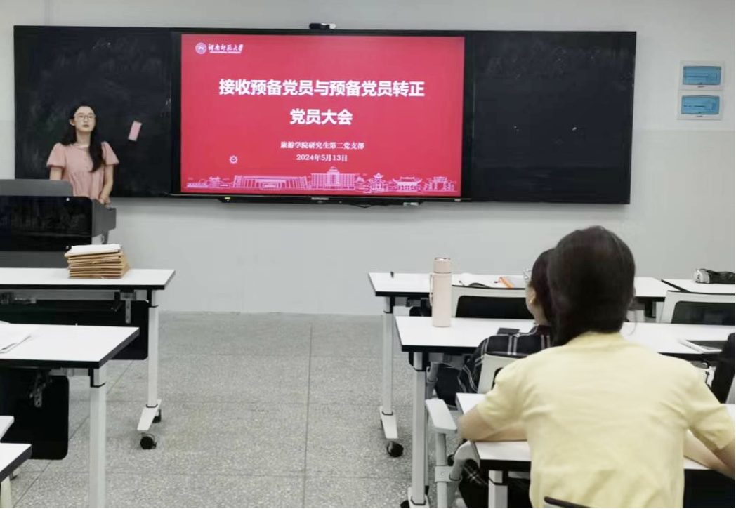 5月13日中午,研究生第二党支部于中和楼118会议室召开接收预备党员与讨论预备党员转正大会。活动由支部书记刘洁主持,支部“第一书记”刘为潍老师和27名正式党员、3名预备党员参加会议。